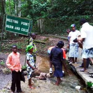 The Ikogosi Warm Springs is located in Ikogosi, Ekiti State of Nigeria. It is a confluence of hot and cold springs meeting together at a point – with each maintaining its own thermal properties. Tests reveal that the temperature at the warm spring is about 70 degrees Celsius at the source, and about 37 degrees Celsius at the point where the warm and cold springs merge together.